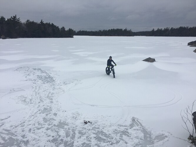 @Rolls A mix of bare ground and ice, a section or two of hard snow. Studs required but very rideable with them. Rode to the lake but didn’t do the back loop.