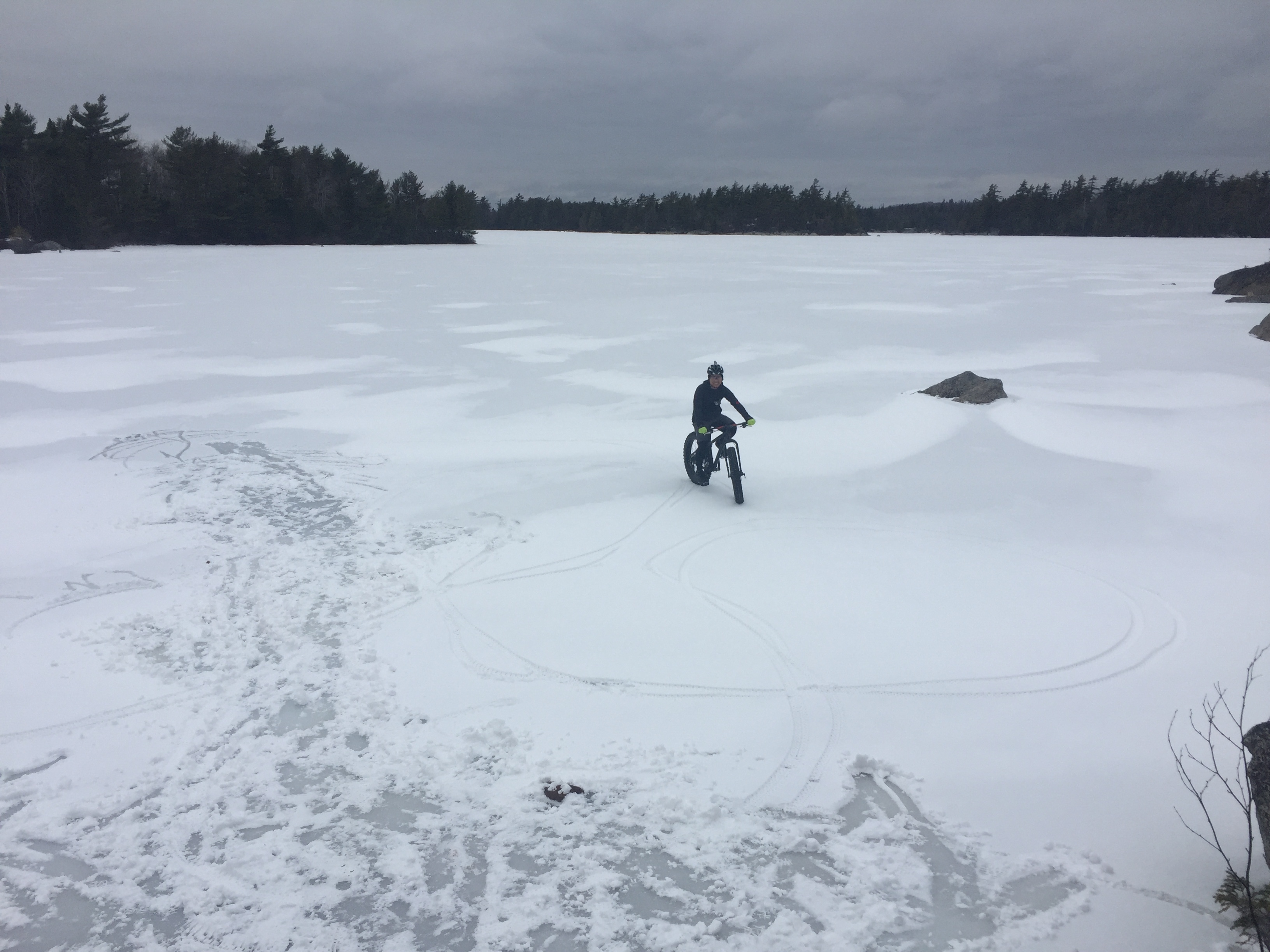 Didn’t go too far. I don’t trust the ice on the lake enough yet. Hoping for another cold snap.