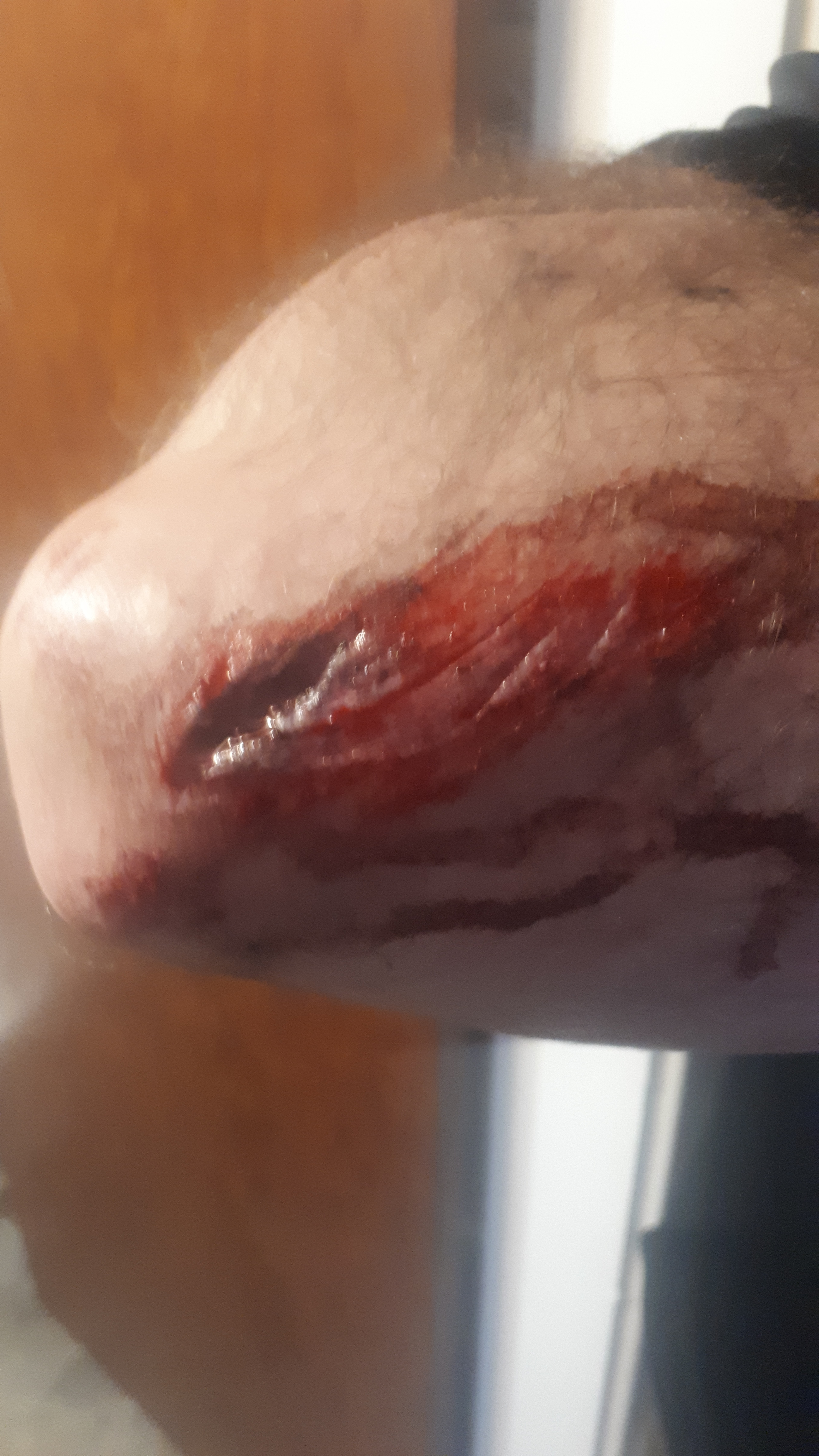 Looks nasty when you take off the bandage and stuff a camera in its face.