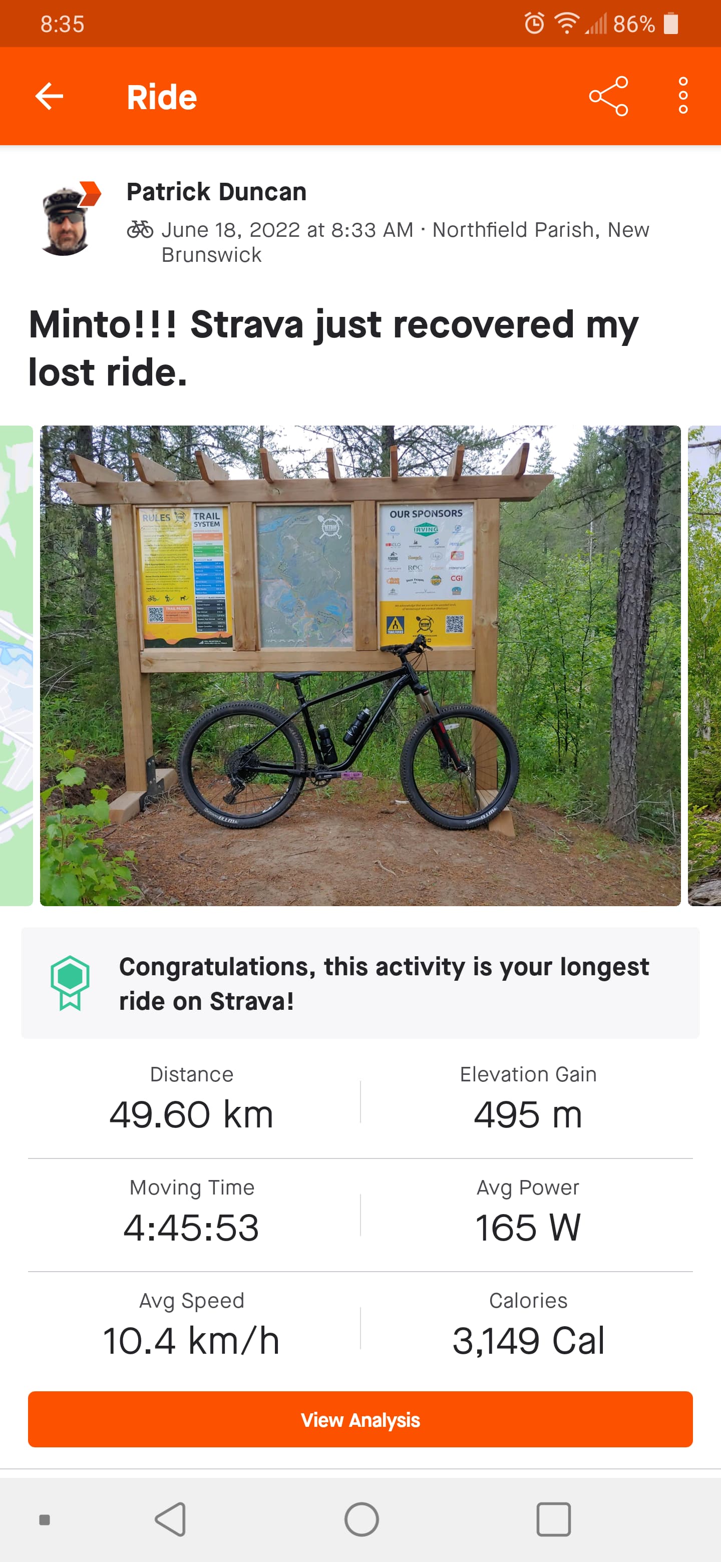 Edit: Opened Strava tonight and there was my recovered ride!