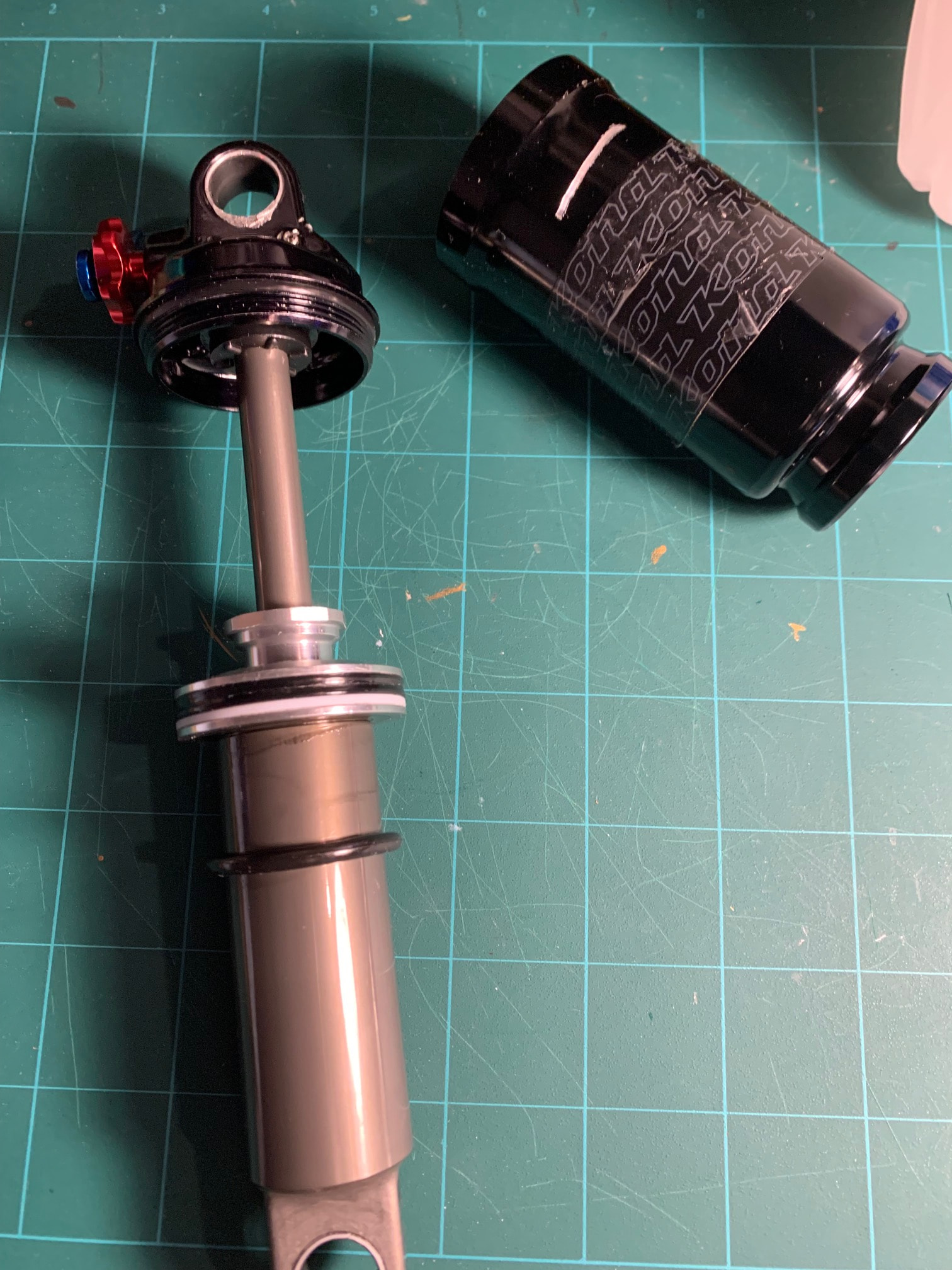 Well I took the plunge to try and service the Kona shock. It was stubborn as hell to get the air can off but finally was able to remove it after a couple of attempts. I did scratch up the can as it took some force to get it off. Not a lot of seals and dust wipers in there but bought a Fox Float kit to see if I could use any of those parts. Unfortunately I didn’t find any that exactly matched the internal ones (some were very close just a little smaller) so I just cleaned everything up really well, removed and lubed up the old seals and rings with Slick honey and added a small amount of Fox float fluid into the can. I tested on a quick ride and all seams ok but still feels a little mushy even at 150 PSI. I’ll try adding more air when I get a chance and test again. I’ll keep the shock locked out but there is still a little play. In the meantime I’ll still be on the lookout for a replacement.