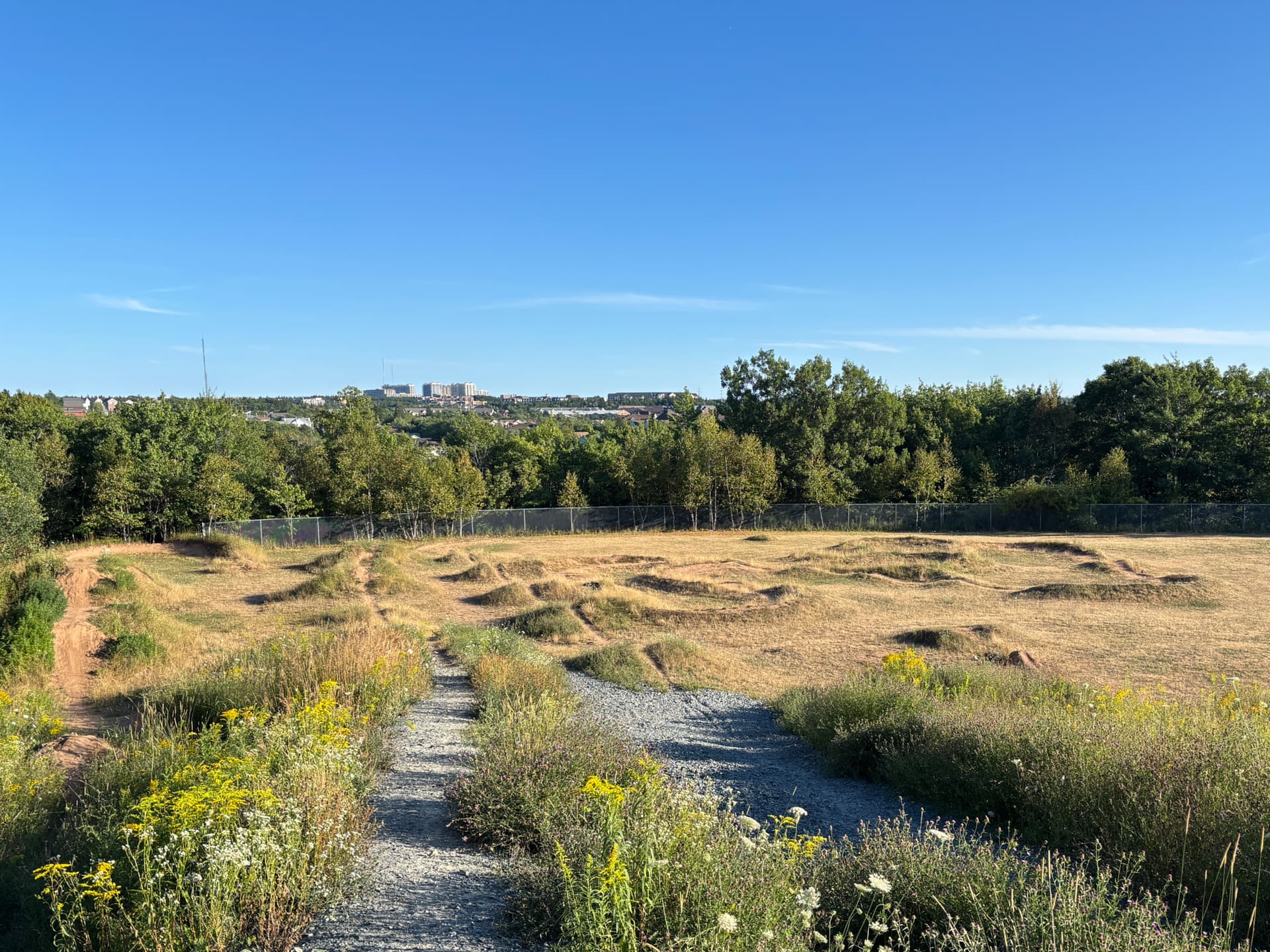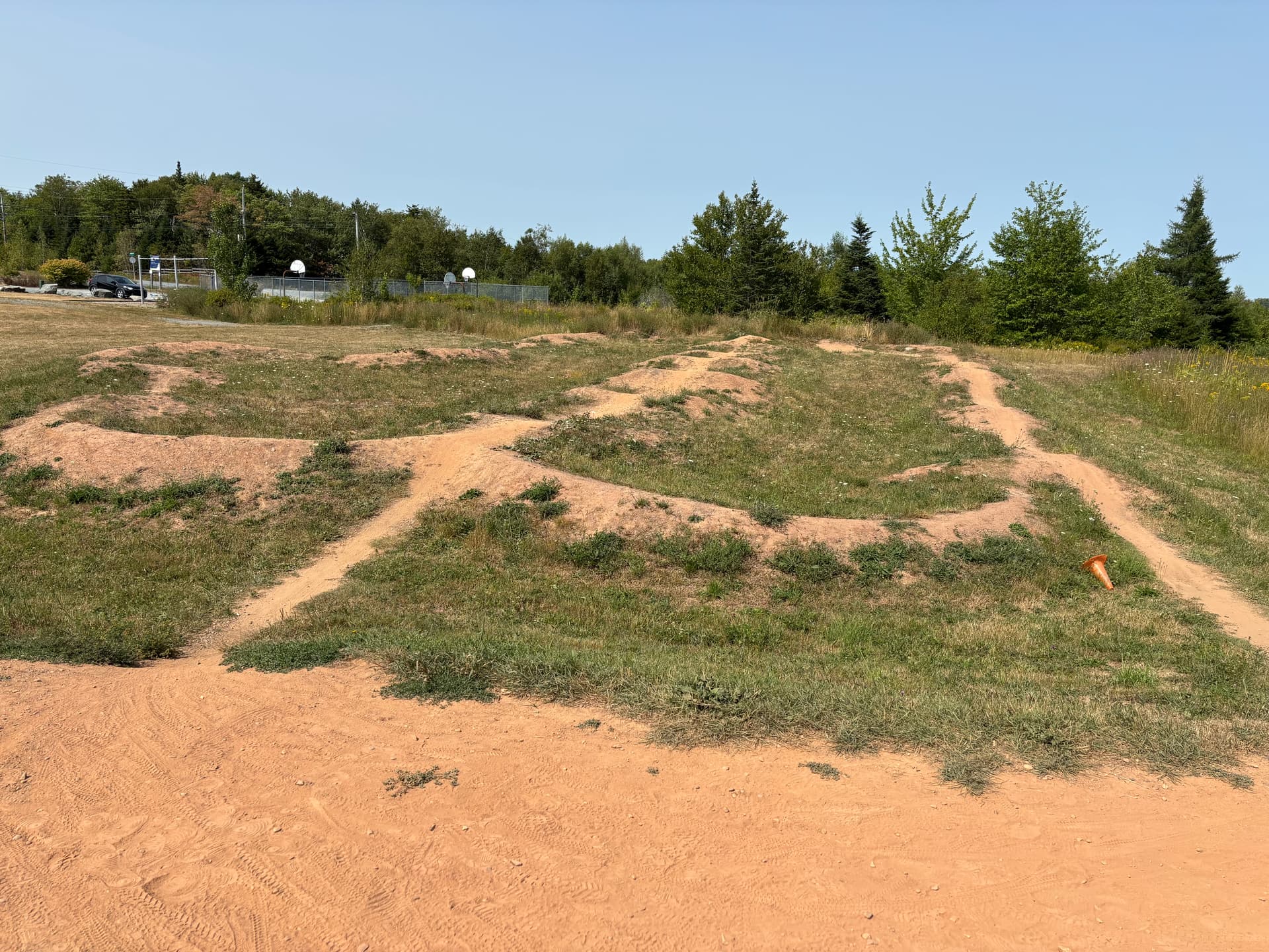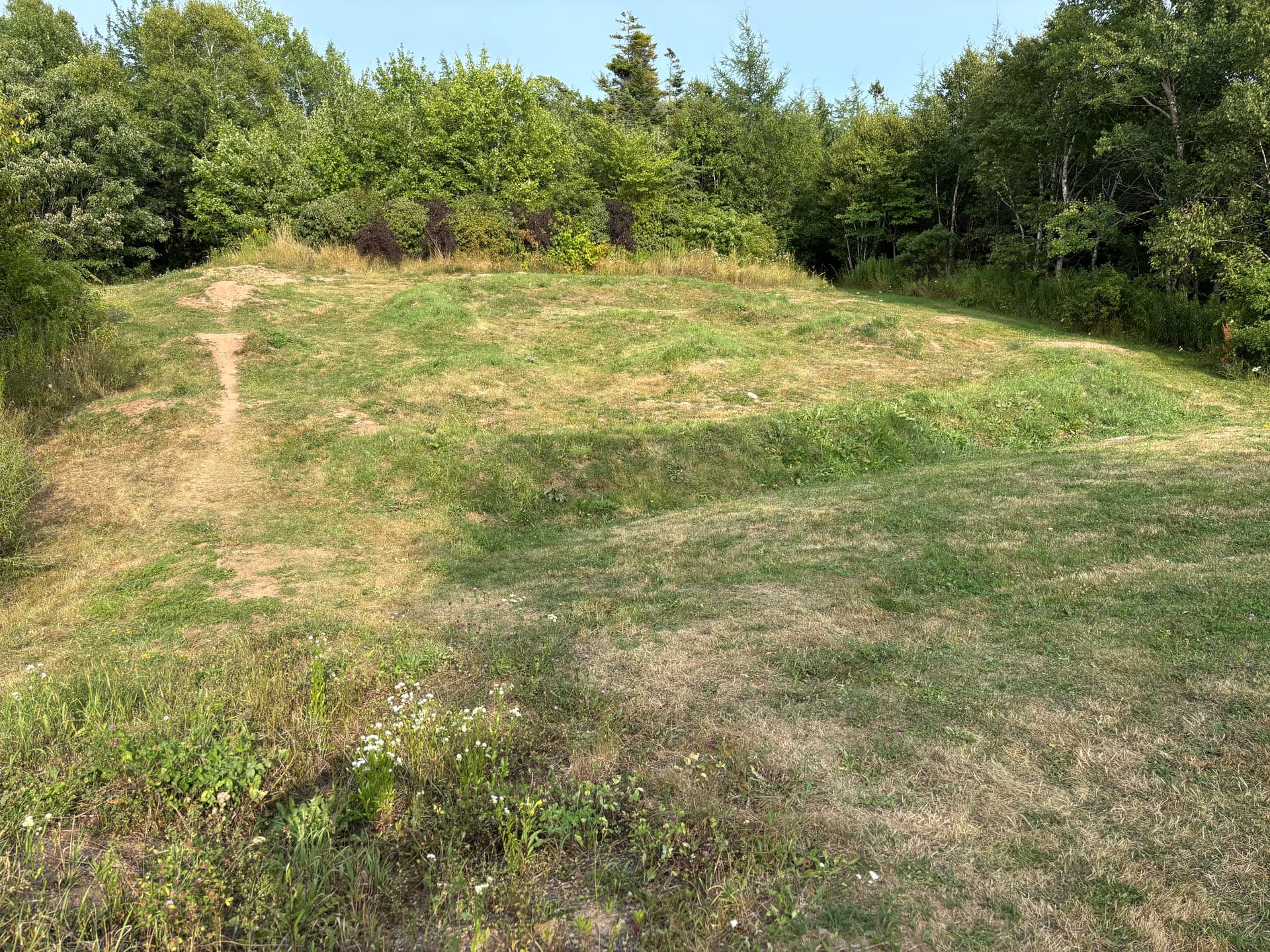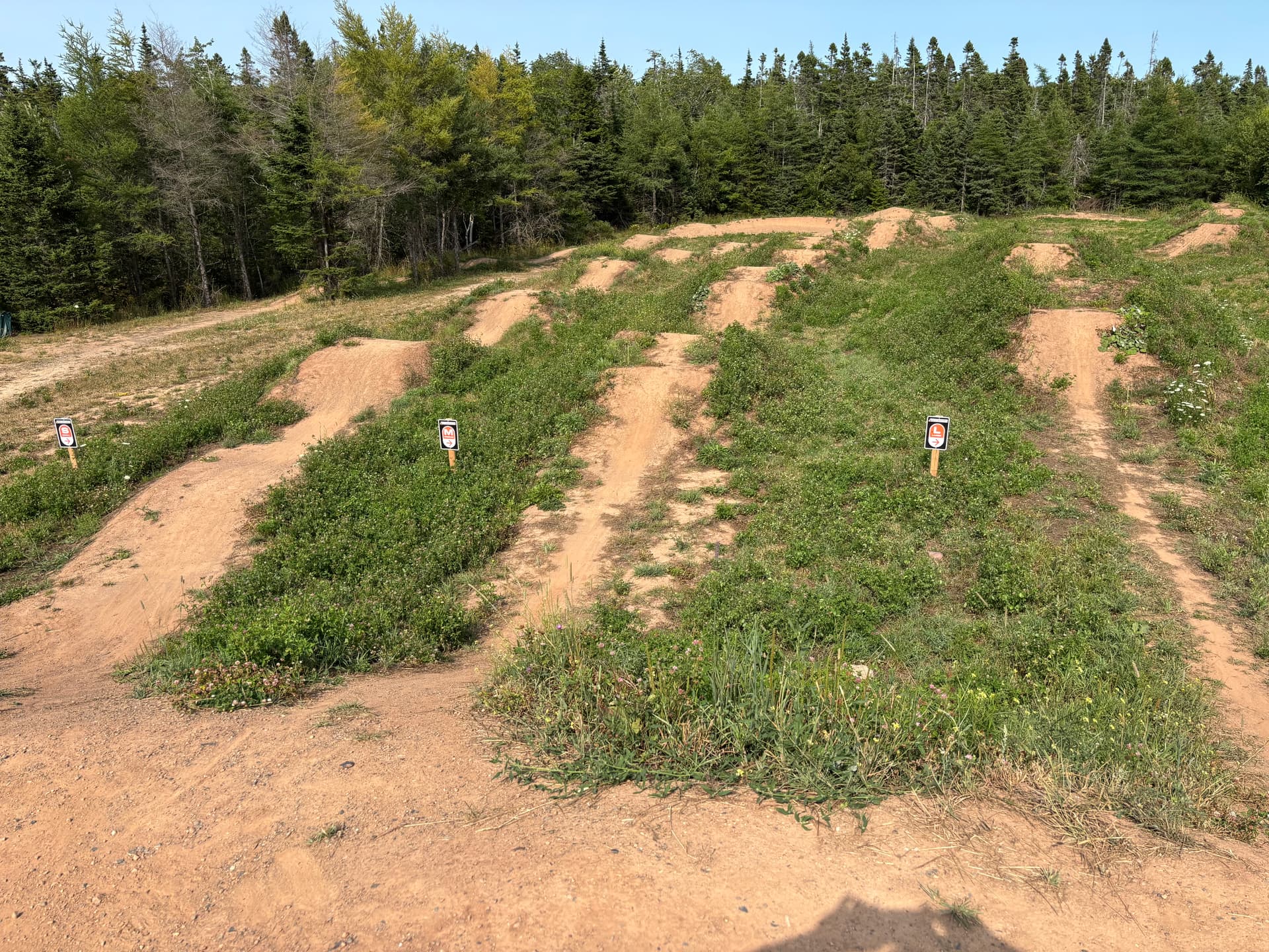 There is a usable line over the jumps and most of the pump track. Looks like there is still a useable line on the pumptrack although the tighter berms grassed over. Unfortunate - it had the best pump track in the area other than the paved Shubie track.