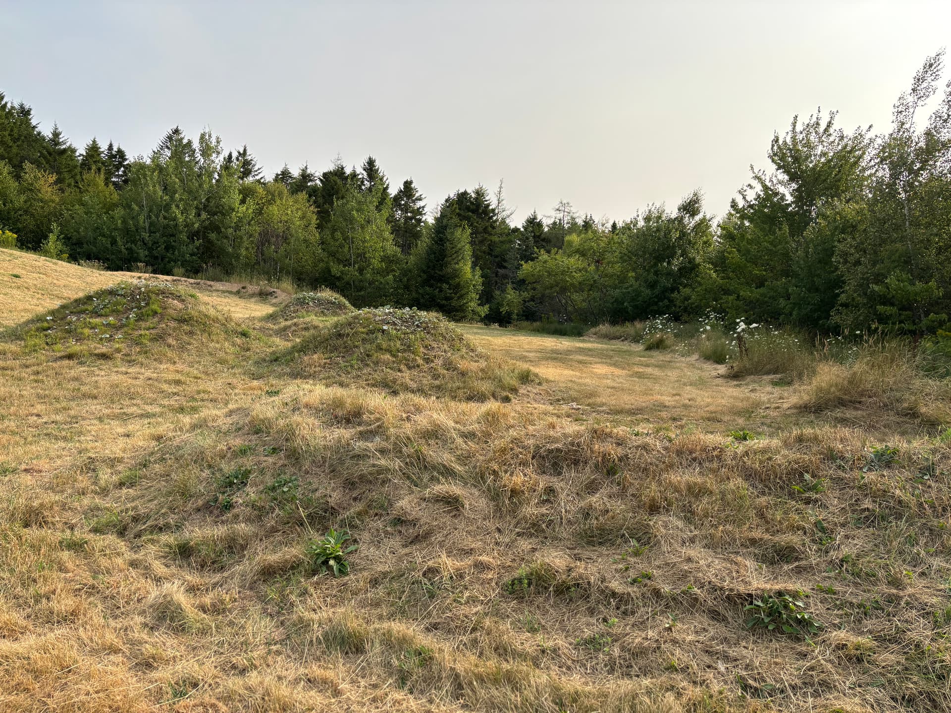 In pretty good shape (relatively). Lots of vegetation around the jumps, but the jumps are in pretty good shape. Three lines - small, medium and large jumps.