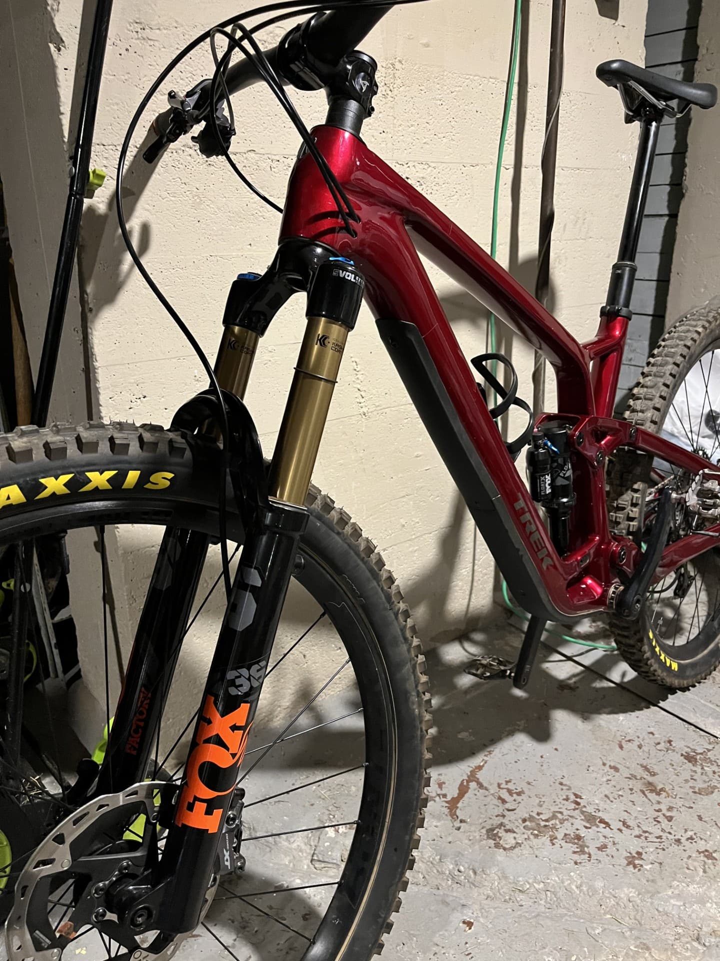 I have upgraded the brakes ( Shimano XT8120), Shifter and rear mech ( XTR ), handlebar ( Oneup ), dropper ( Oneup V2, 240mm ), fork ( Fox Factory Grip 2 ), stem ( Raceface Turbine ). Purchase also includes a Fox DHX coil shock with 500lbs coil, good for around 180lbs. I have never ridden the shock.