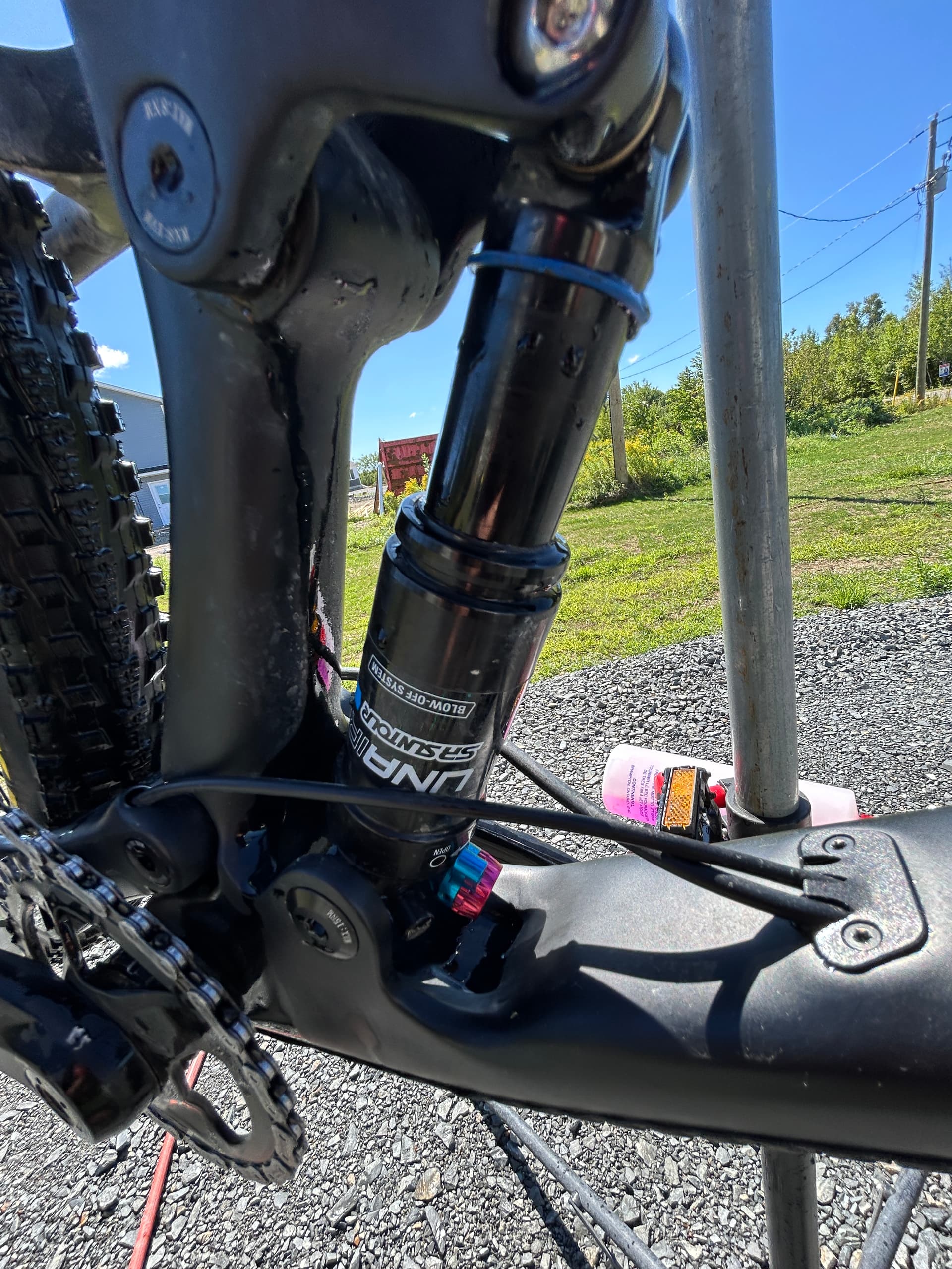 Rear suspension: Suntour Uniair Trunion shock with lockout and rebound, 100mm travel.